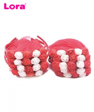 10 Adet Kırmızı-Beyaz Güllü Nedime Tacı - 98988