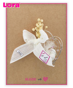 Keten Kurdeleli Kalp Tel Sepet İçinde Şekerli ve Kuru Çiçekli Hediyelik - 29520