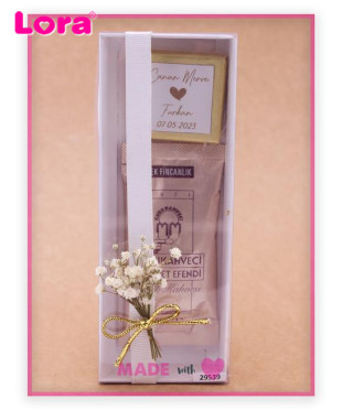 Türk Kahvesi ve Madlen Çikolatalı Asetat Kutu İçinde Kuru Çiçekli Hediyelik - 29539