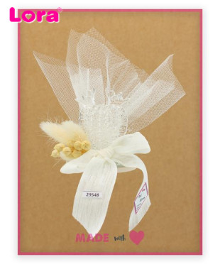 Keten Kurdeleli ve Cam Kalp Figürlü Kuru Çiçekli Hediyelik - 29548